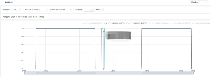 根據(jù)用戶的需要,對一段時間內(nèi)的歷史數(shù)據(jù)或?qū)崟r數(shù)據(jù)按照一定的統(tǒng)計頻率進行多個維度的數(shù)據(jù)分析,統(tǒng)計頻率包含不限、10秒、30秒、10分鐘、30分鐘、1小時,通過添加變量操作,在彈出的變量選擇彈窗中可多選數(shù)據(jù)點信息進行分析;數(shù)據(jù)分析得到的圖表顯示形式包括折線圖以及表格形式。多個數(shù)據(jù)點信息圖表的展示形式包括平鋪、疊加、標(biāo)簽顯示以及合并表格顯示,根據(jù)不同的需求選擇對應(yīng)的展示形式,靈活性高。數(shù)據(jù)分析幫助用戶分析用戶想要分析的內(nèi)容,如數(shù)據(jù)走向,問題等,可以將分析的邏輯進行保存并可以按部門和人員進行公開,從而幫助用戶解決問題。(可參考圖1.1)