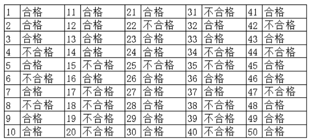 某醫(yī)療用品生產(chǎn)企業(yè),對生產(chǎn)的醫(yī)用防護手套外觀有一定要求,要求手套寬度符合≥80mm的標準。抽取10只手套,若有8只寬度都小于80mm,那么我們就會認為實際生產(chǎn)寬度小于80mm,不可采用目前設(shè)定的參數(shù)進行生產(chǎn)。若抽取10只,僅有1只小于80mm,那么我們并不會認為手套的實際寬度均小于80mm。因為,機器制造手套不可能100%保證每次都是完美的,個別小于80mm是正常現(xiàn)象。所以,我們就可以通過單樣本率檢驗來判斷手套的實際生產(chǎn)寬度是否符合外觀標準。該手套生產(chǎn)企業(yè)一天能生產(chǎn)1萬只手套,將一天生產(chǎn)的手套作為整體,通過一定的方法抽樣得到50只手套,并對這50只手套的寬度進行檢測,寬度小于80mm的記作不合格(本案例需要每隔一段時間抽樣5只,共抽樣10次來形成樣本,以確保抽樣的涵蓋率),得到50次試驗手套寬度的檢驗結(jié)果,如表1所示。