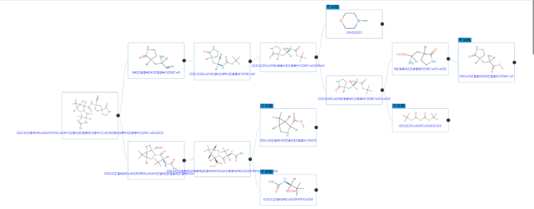 本次案例就輝瑞公司新藥Paxlovid進行逆向合成的結果展示。