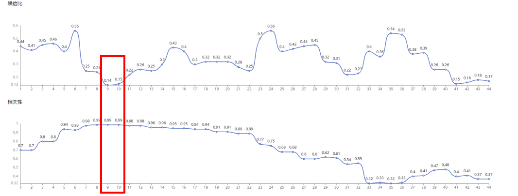 圖4.不同波動下載冷劑圖譜的躁信比與相關(guān)性